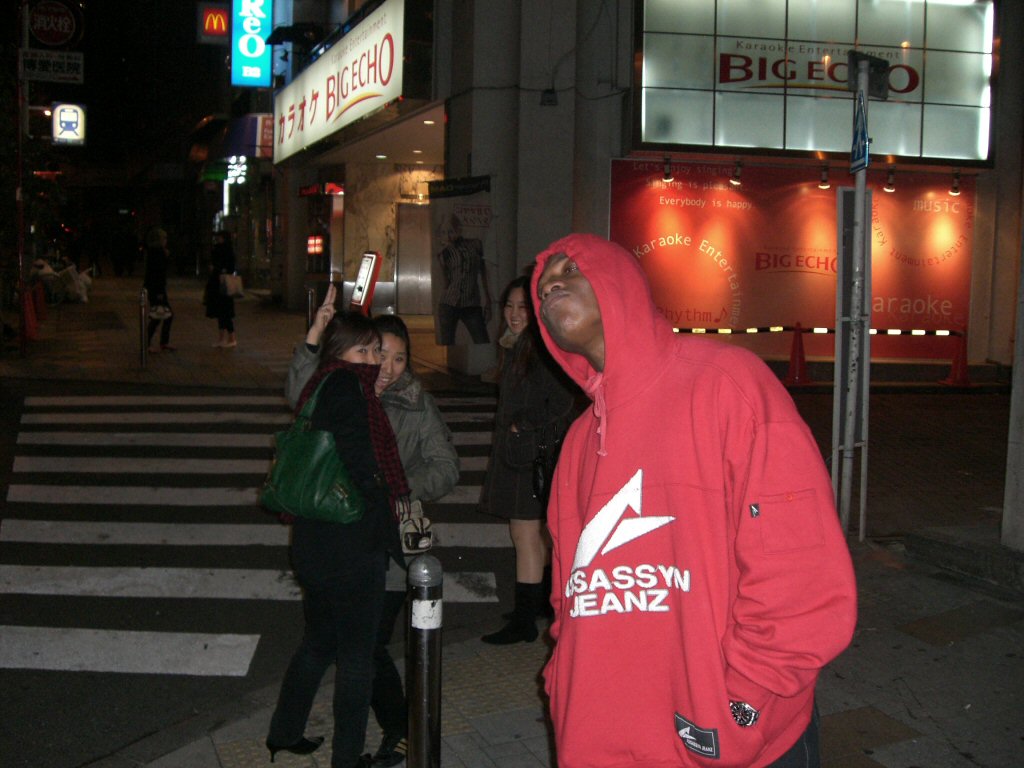 E intanto si decide: che fare nelle ultime ore? E qui mi ergo, sostenendo che non si puo' non andare al karaoke. Quindi, usciti in strada ne cerchiamo uno; senza fare troppi sforzi veniamo agganciati da uno dei ragazzi di un Big Echo vicino, uno di quelli che passano la notte fermando i passanti e proponendo loro una sosta nel loro locale invece che in quello del vicino.